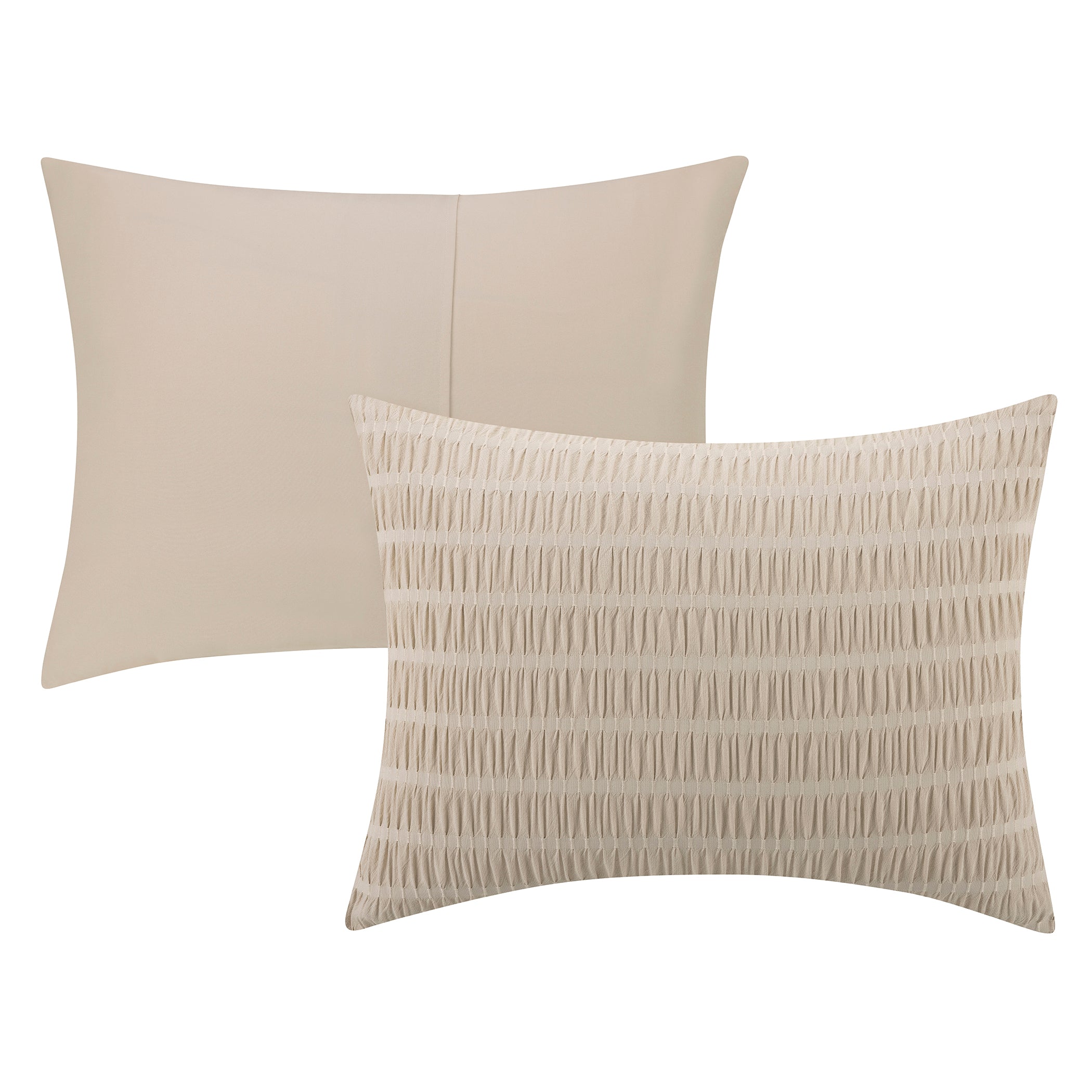 Noriah Ruched Stripe Comforter Set in Stone, Set of 3