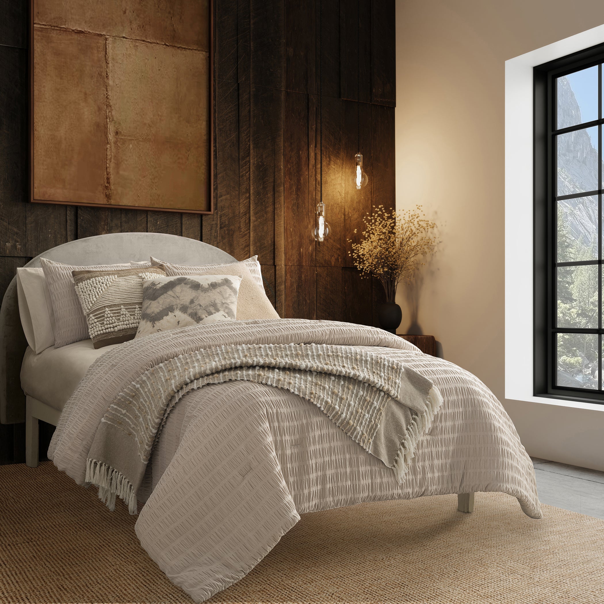 Bring luxury and comfort to everyday living with the Noriah Ruched Stripe Comforter Set by Indigo Road, a brand founded by renowned designer, HGTV star, and real estate broker Egypt Sherrod. Guided by her belief that your home should feel good from the inside out, this rich textured comforter with solid, neutral tones make it an easy addition to any bedroom, from modern to traditional, while the ruched stripes add a unique twist. The subtle texture and soothing color create a serene, peaceful ambience, ideal for a restful and inviting sleep environment. Set includes 1 comforter and 2 shams. To care for your comforter set, machine wash cold on gentle cycle. Use non-chlorine bleach when needed. Tumble dry on low heat. Do not iron.