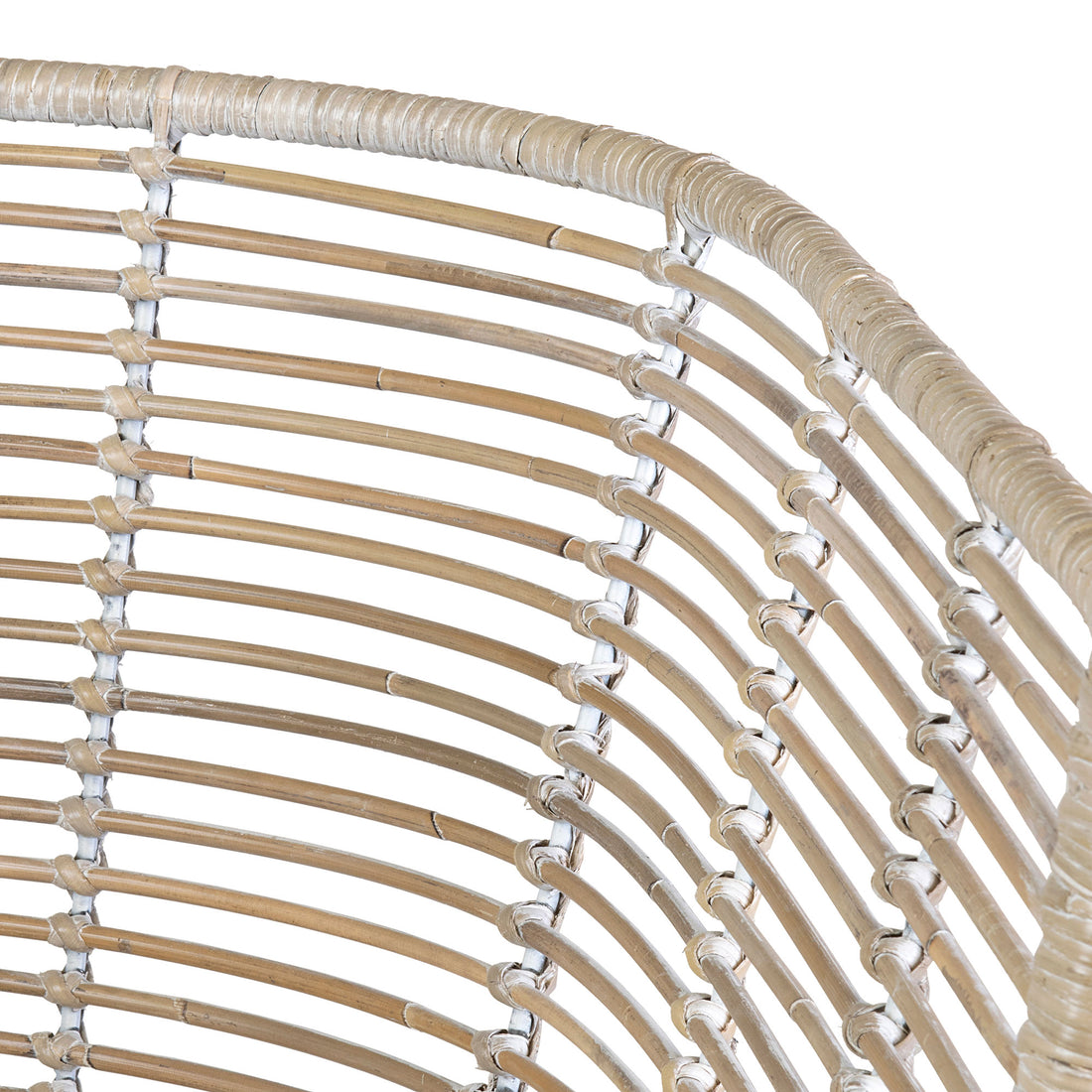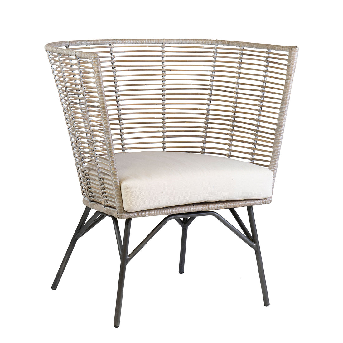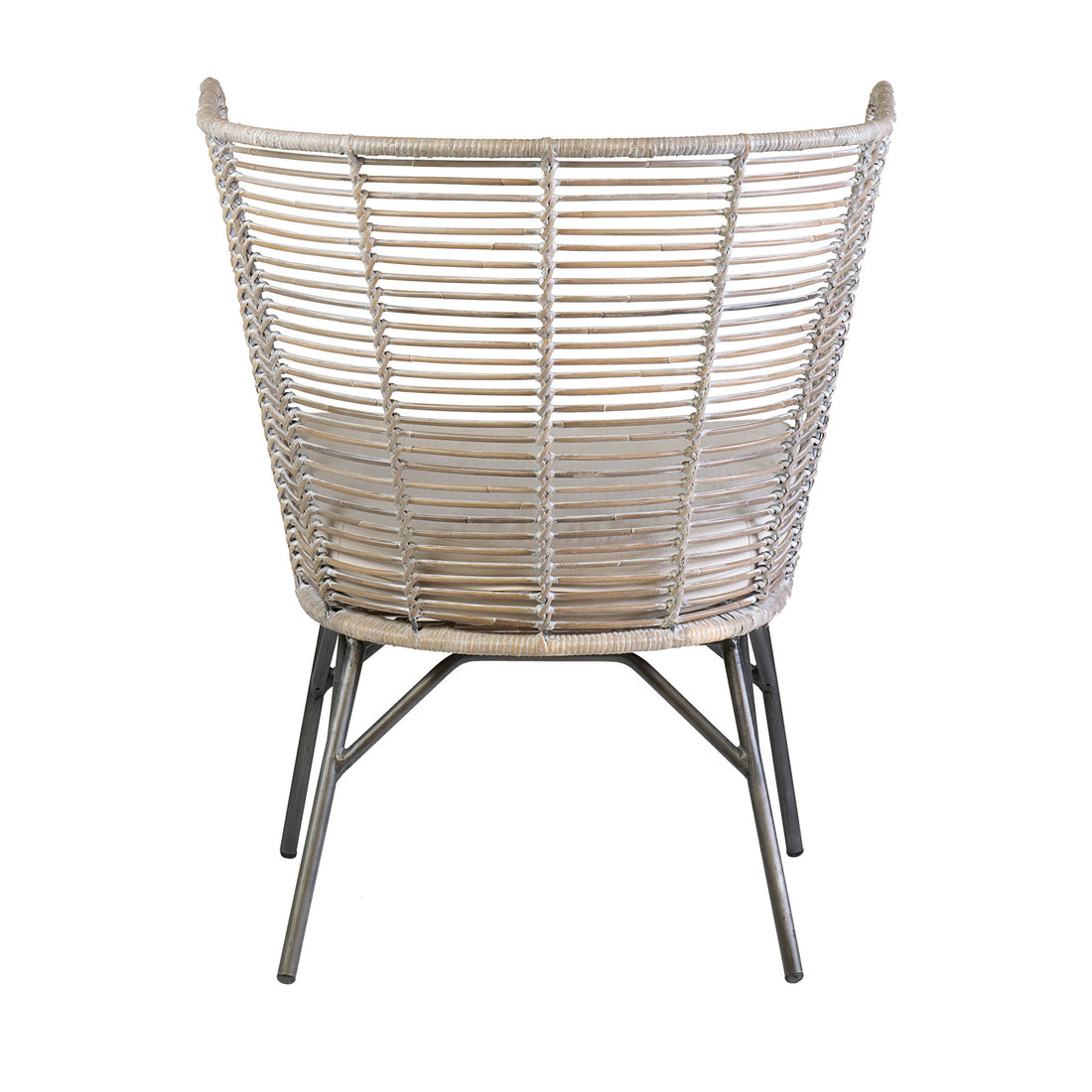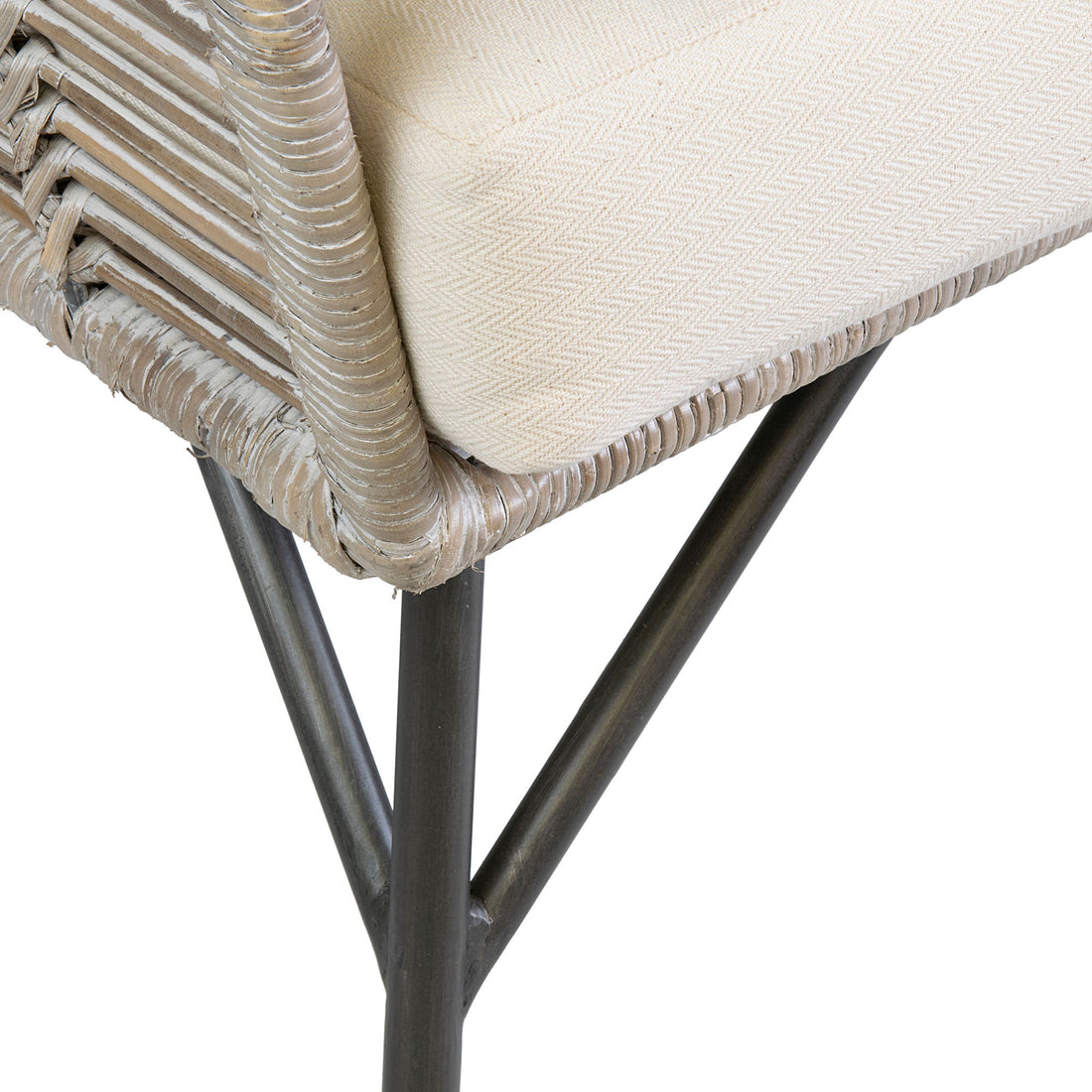 Laid back style, modern appeal, tropical flare, this occasional chair is packed with personality. Features include a handwoven "U" shaped rattan seat with white wash finish, iron base, and off-white linen covered cushion. Bring this chair into your abode and tropical paradise will follow.