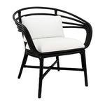 Stylish enough to be a statement piece in your living room and a cozy conversation nook, this versatile occasional chair is handcrafted from sustainable rattan with a bold, rounded silhouette. The inviting extra-wide seat design is enhanced by a comfortable, fixed canvas cushion and additional back pillow. The matte black finish and midcentury-inspired lines give the sculptural, curved back design of this accent chair an elegant, modern feel, while the natural rattan texture adds a relaxed coastal vibe to your space.