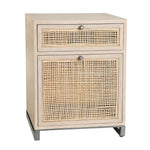 Bring a natural touch to your home with this box cane filing cabinet. This breezy cabinet features 2 handwoven cane drawers that add texture for a pop of tropical charm. Crafted from solid mango wood with sleek industrial iron legs, it is sure to stand the test of time. Handmade for beauty and lasting quality, each cabinet features subtle wood grain variations finished with a light whitewash, making each item as unique as your style.