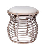 With its whitewashed rattan base and upholstered inset cushion, The Dickerson stool has a casual and relaxed look. Rattan core is soaked and bent to create its sturdy, rounded shape, while strips of rattan peel create a detailed cross wrapped look.