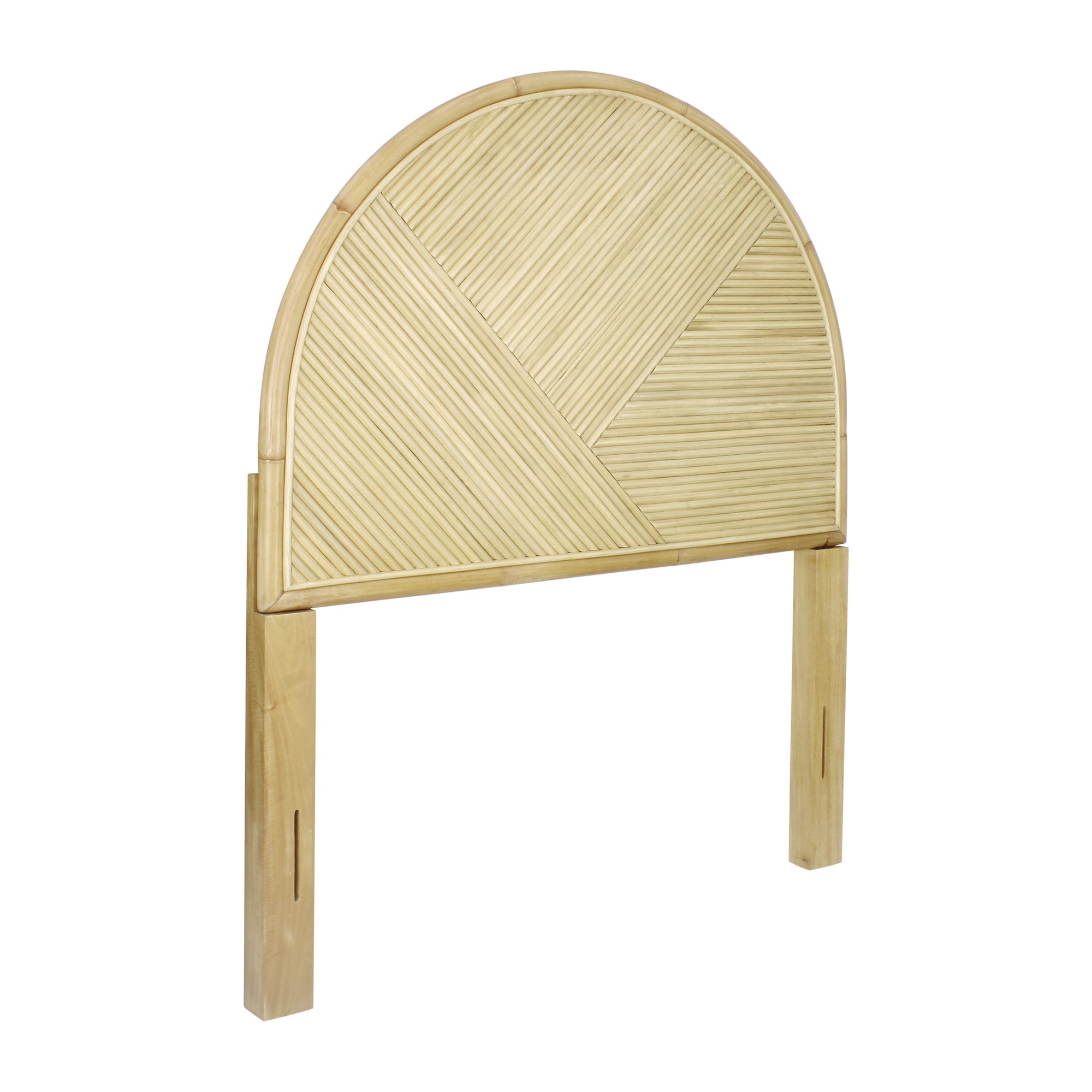 Introduce a relaxed global aesthetic to your bedroom with the Doma Rattan Ribbed Headboard, offered in multiple sizes to fit nearly any mattress. Crafted with durable rattan in a unique layout, its timeless round silhouette adds artisanal texture and charm, seamlessly blending with coastal, transitional, or traditional interiors. Designed for stability, it mounts directly to a universal bedframe (bedframe not included), while the solid mahogany wood legs and frame feature a warm, natural finish for a polished yet organic look. Elevate your space with a versatile centerpiece that creates a serene and stylish retreat.