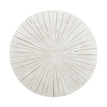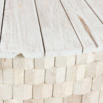 It's all in the details with this beautiful coffee table. Cut pieces of teak are laid in a mosaic style and finished with a white wash, giving each individual wood tile its own character. Remove the teak top to reveal ample storage space, perfect for extra blankets or pillows. Because of its round shape, this coffee table works wonderfully to break up blocky sectionals and add a different shape to your space.