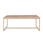 The Hart Coffee Table adds a touch of sophistication to the living room. Featuring a parquet mango wood top and a minimalist gold frame, this coffee table offers ample space with a 47.25" tabletop. Perfect for adding large coffee table books and chic decor.