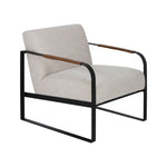 Modern style and classic comfort collide in this occasional chair. Leather wraps on the arms complement the neutral fabric of the seat, creating an elevated look for any space. With a sturdy metal frame and superior craftsmanship, this accent chair is a lasting investment. Pair with an eye-catching floor lamp and shelves brimming with books for a perfect spot to relax, read and recharge.