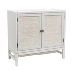As versatile as it is stylish, this natural raffia paneled wood cabinet adds storage and modern organic warmth to the bedroom, living room, or hallway. Featuring two doors that open to an interior shelf, this piece offers versatile storage options even for small spaces. The handwoven raffia panels on each door provide organic texture and depth to your space, perfect for coastal, traditional and transitional decor styles.