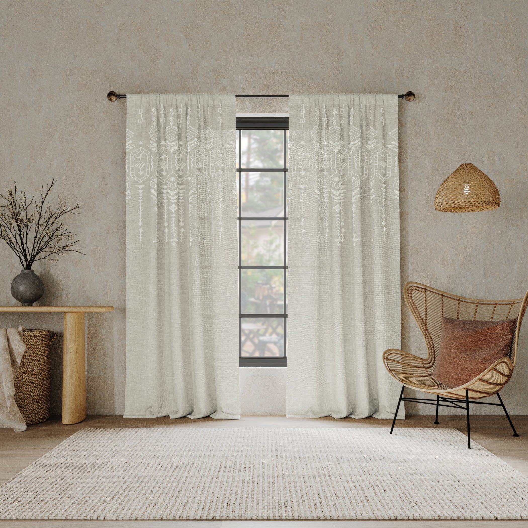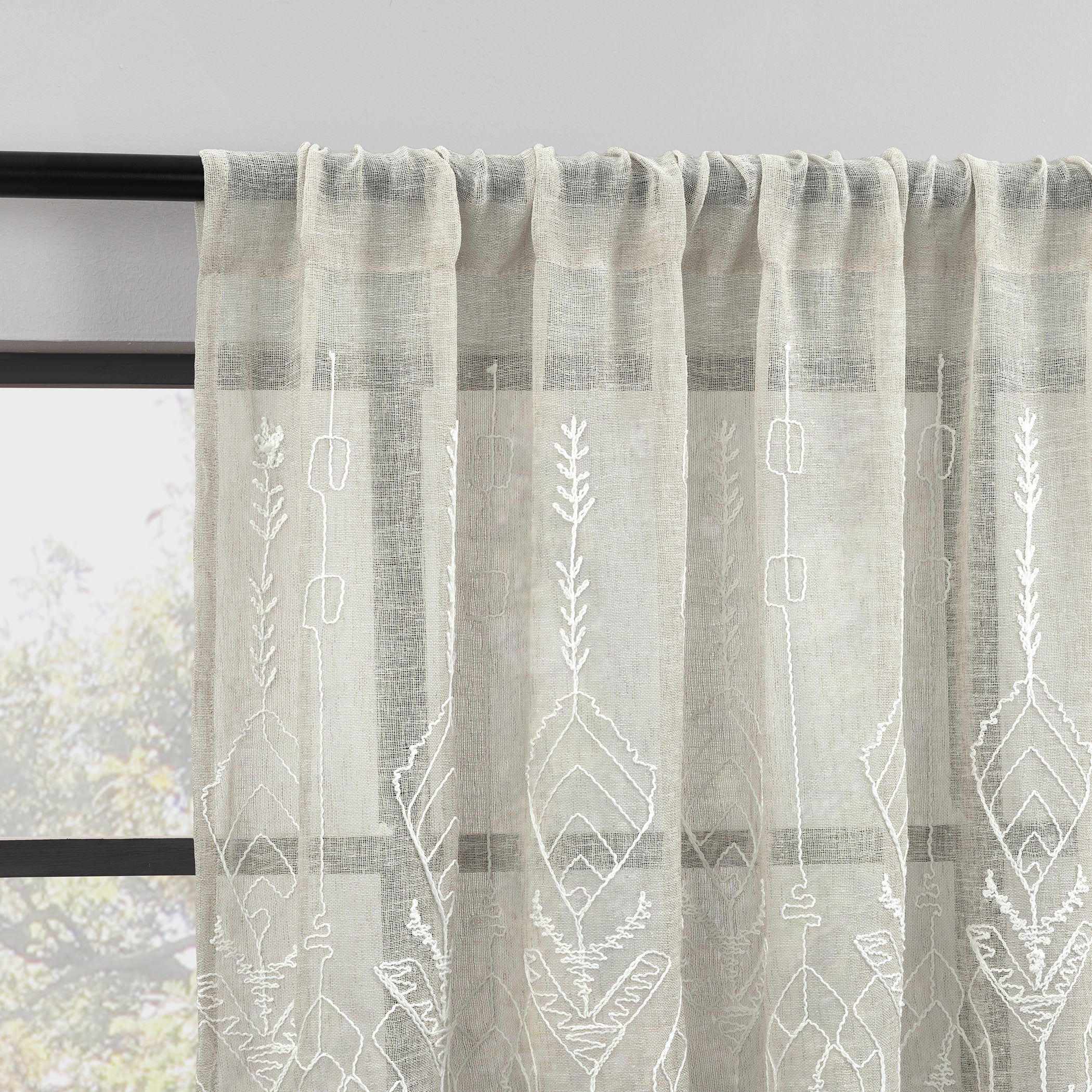 Palo Global Embroidery Semi-Sheer Rod Pocket Curtain Panel in Natural