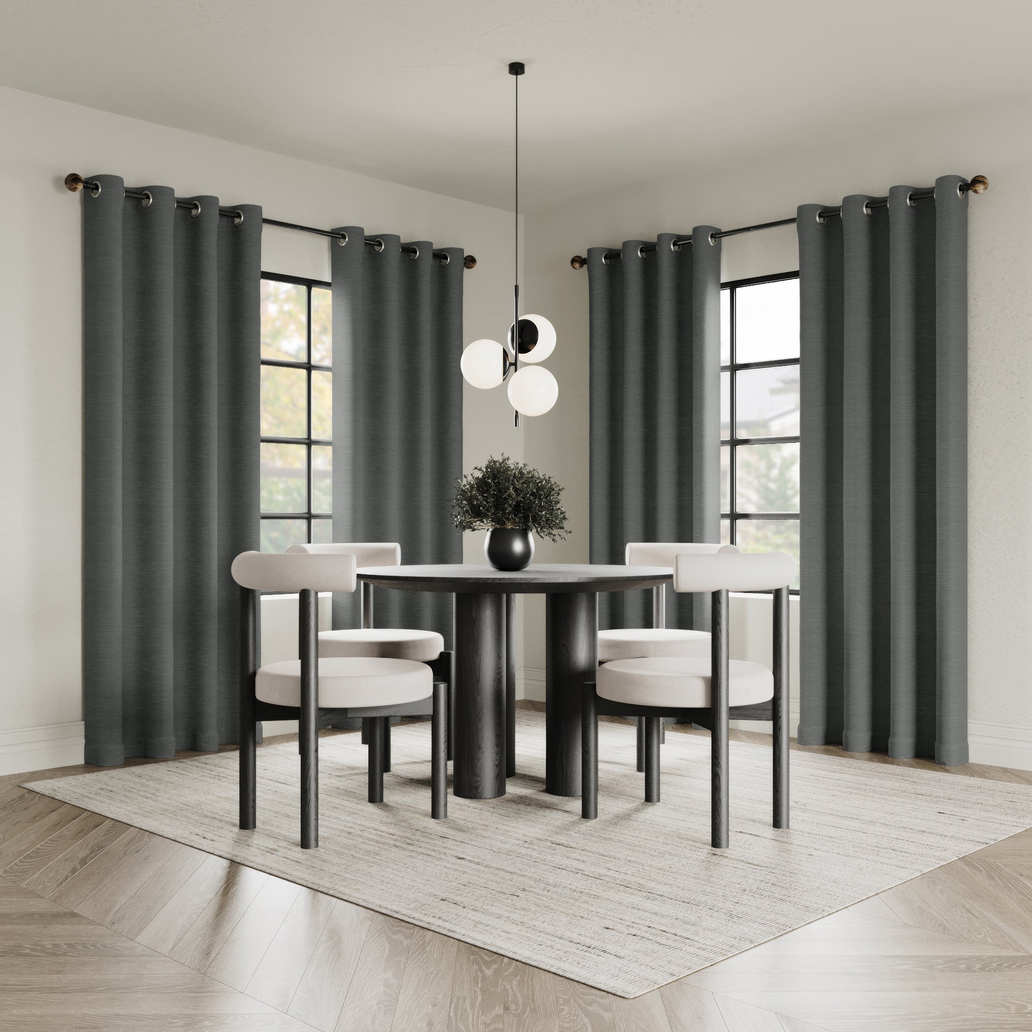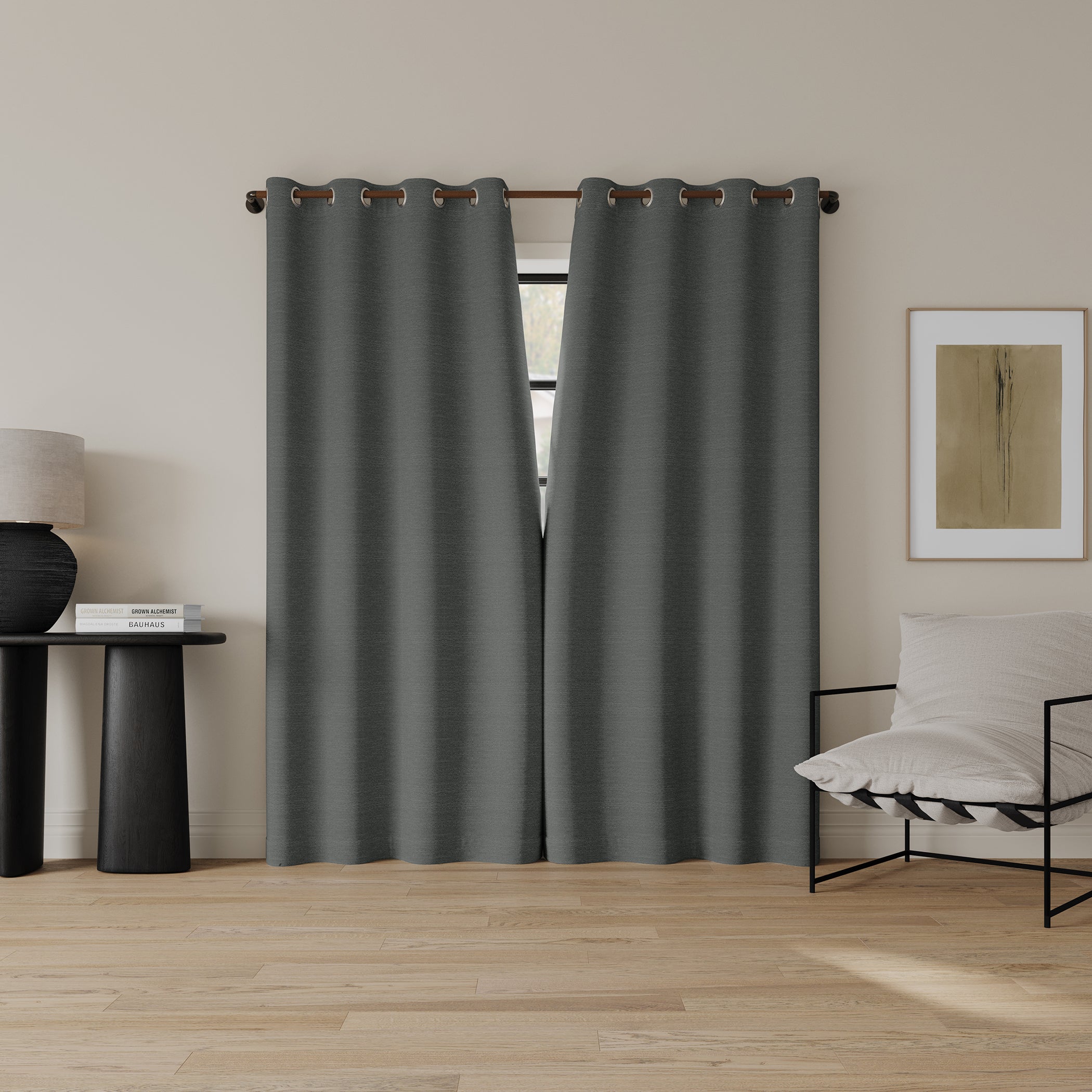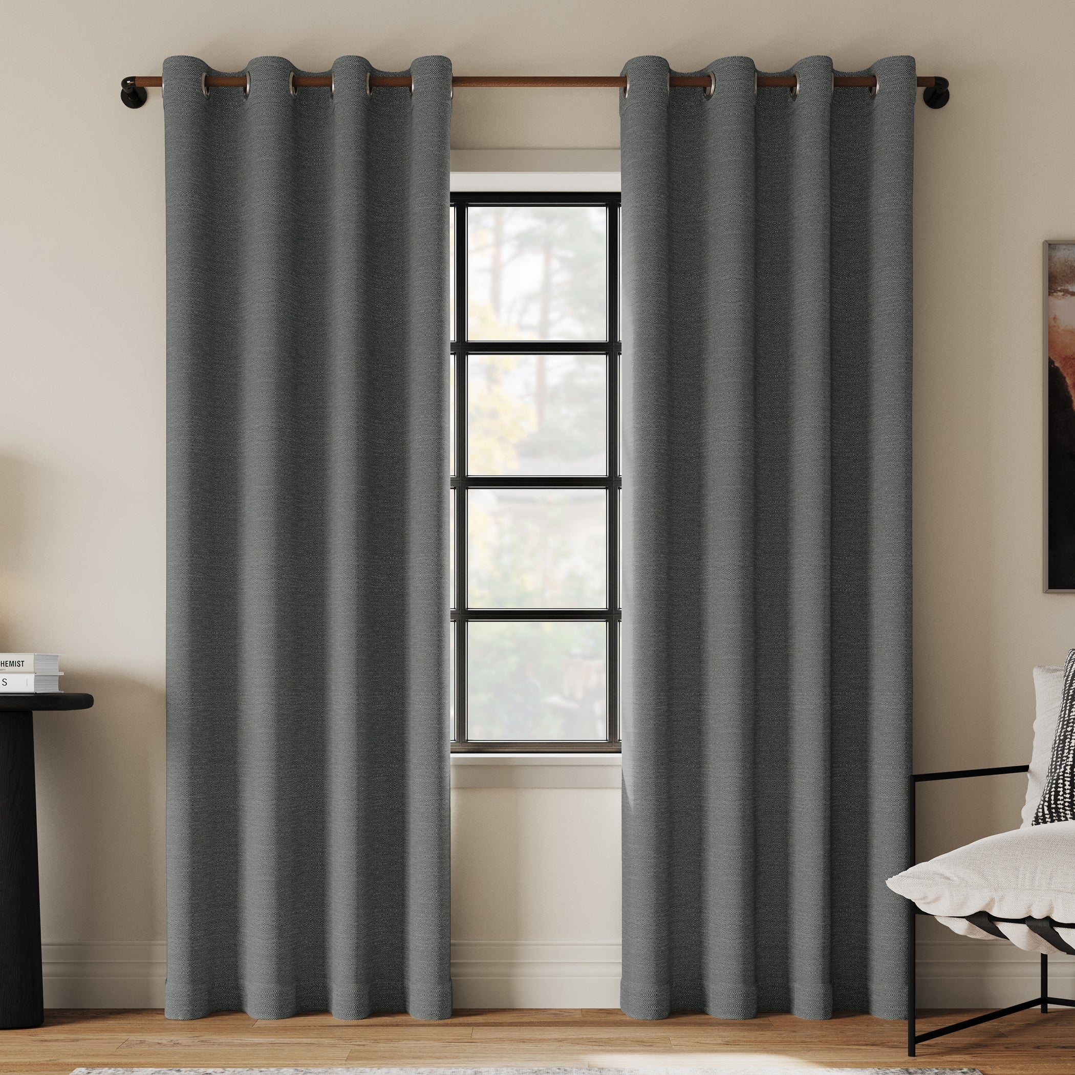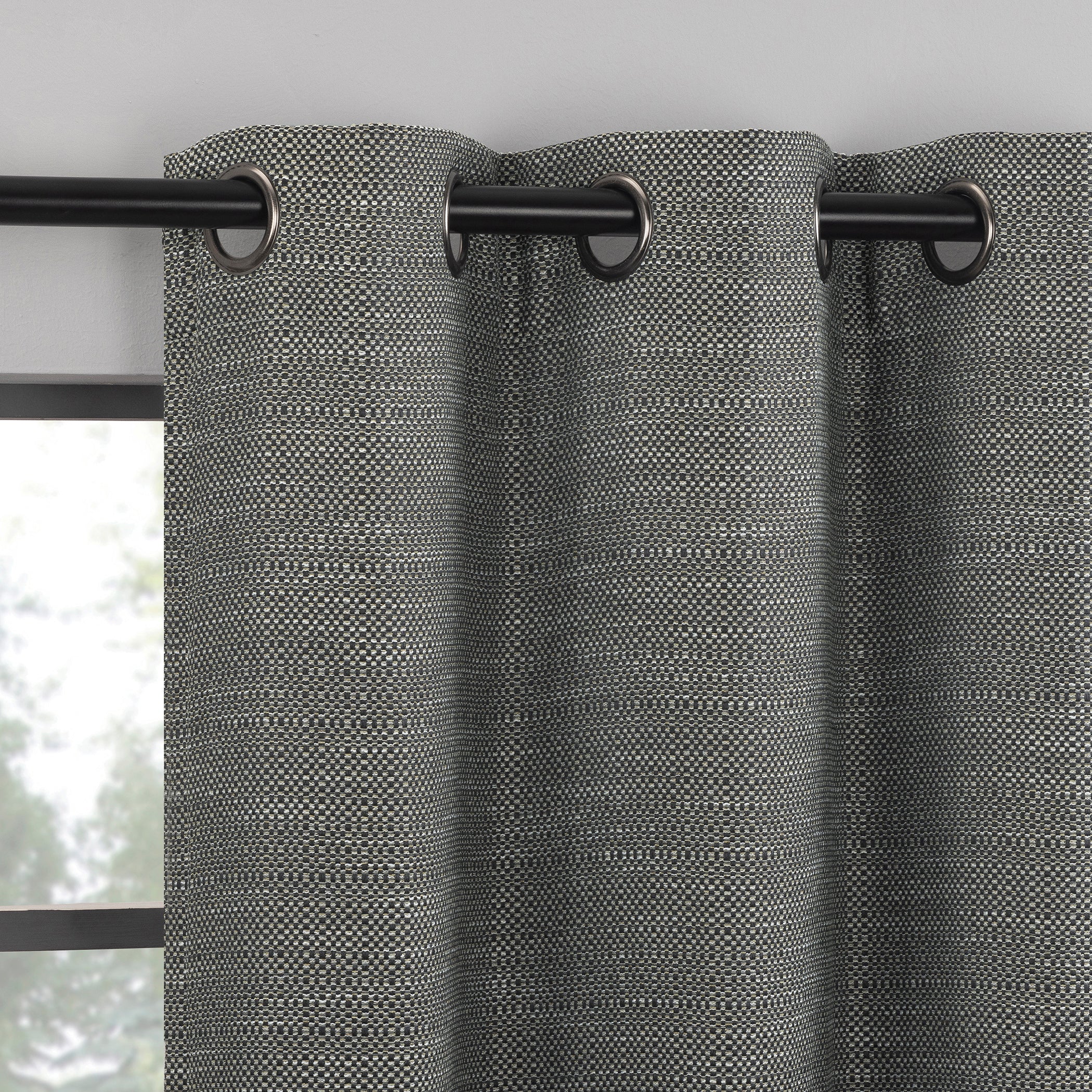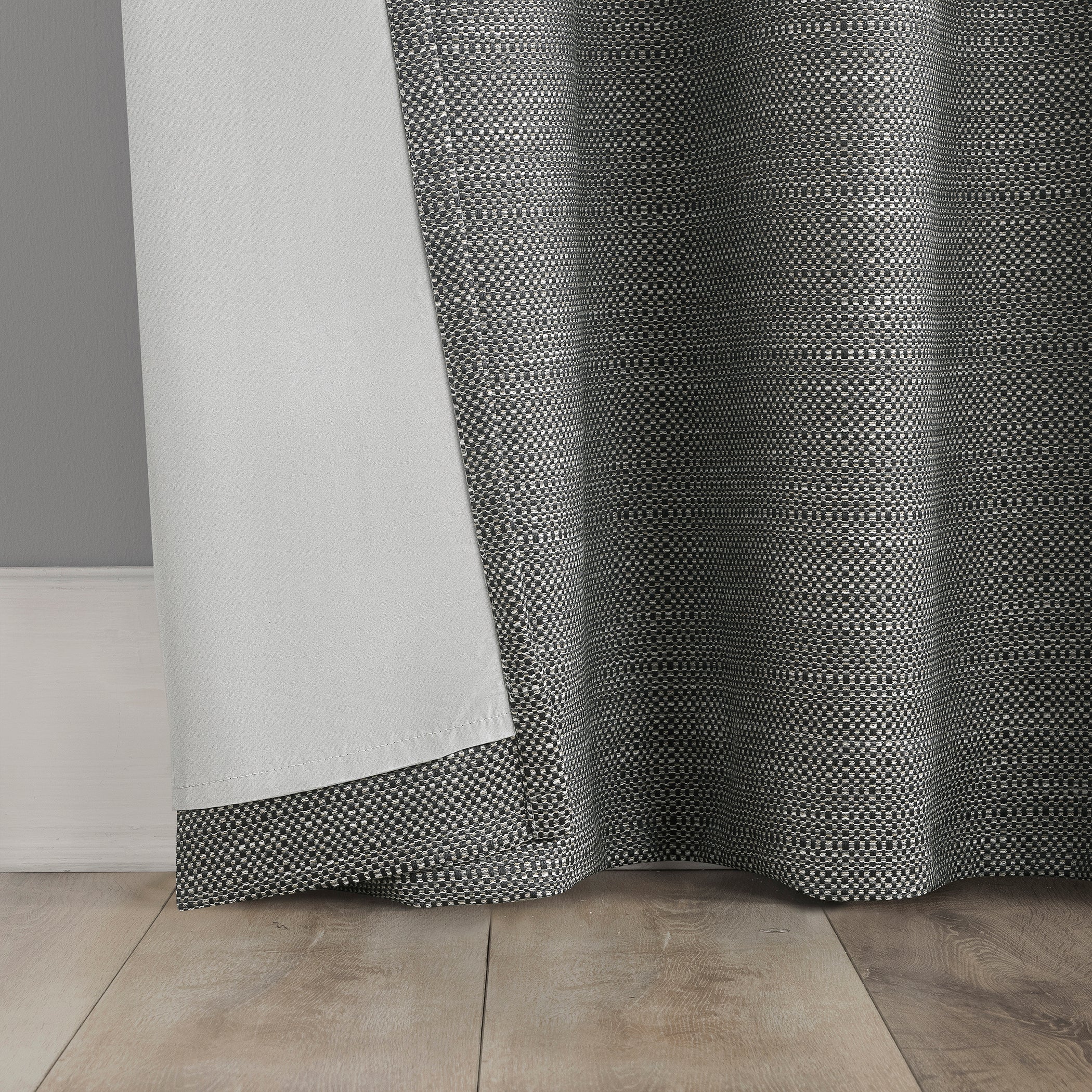 Sarasi Contrast Tweed Magnetic Closure 100% Blackout Grommet Curtain Panel in Coal