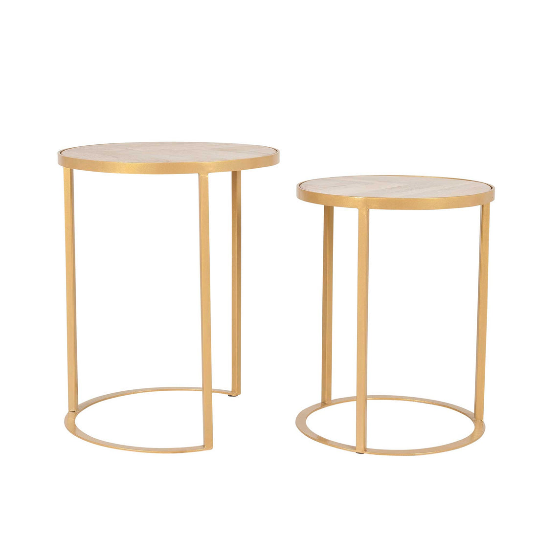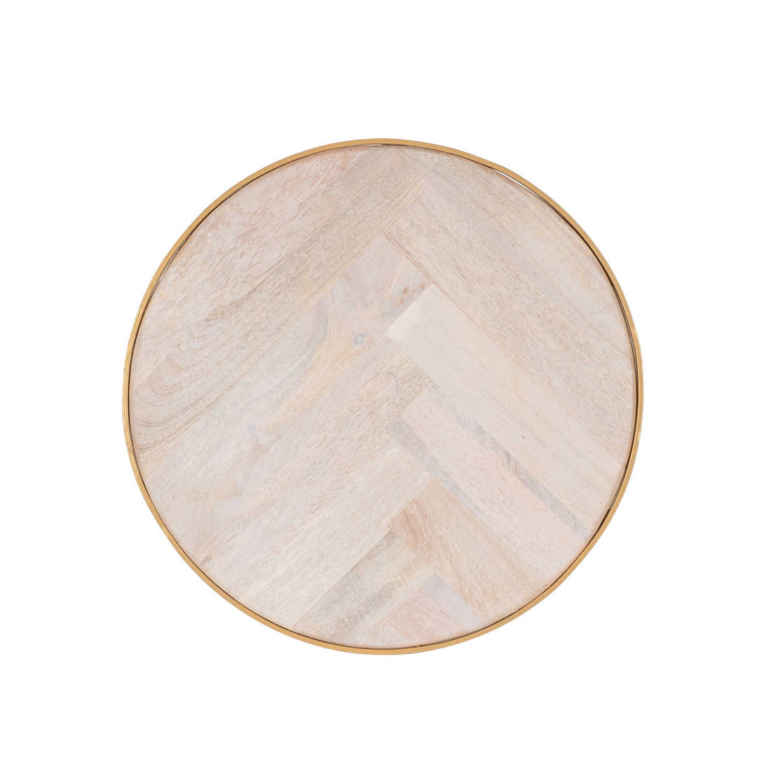 Ideal for small spaces, round nesting tables let you tuck away the smaller style, ready to reappear at party time when the extra table surface is needed. The open design also takes up less visual space, for a clean and light feel. A modern, linear base is made of iron with a distressed, whitewashed mango wood top.
