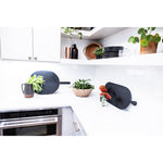 Natural wood serving boards are finished in a rich, satin black for an organic, minimalist look. The elongated shape and small scale create a bold, sculptural silhouette. Display on open shelves in the kitchen, or feature in a styled tablescape.