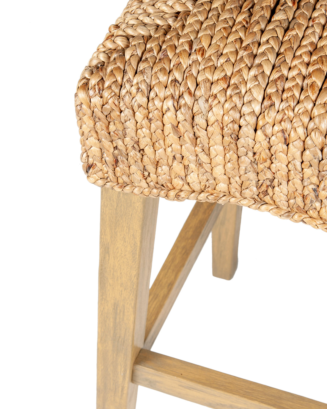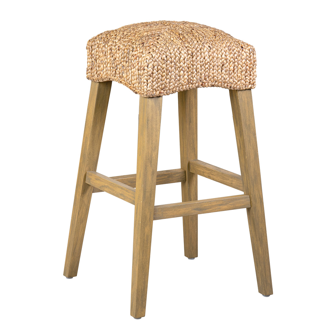 Accent your home with this charming pair, the Wyatt Stools. The form is beautifully simple and contemporary; crossbars provide added support and a convenient footrest. The water hyacinth offers the timeless beauty of stained natural fibers with a driftwood frame. The natural woven design and contemporary finish make this a great addition for transitional to modern homes.