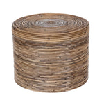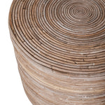 Concentric circles of gorgeous steam-bent, color-washed pieces of rattan are laminated to a sturdy plywood form, creating a sculptural side table or pull-up stool when extra seating is needed. Carefully handcrafted using sustainable rattan.