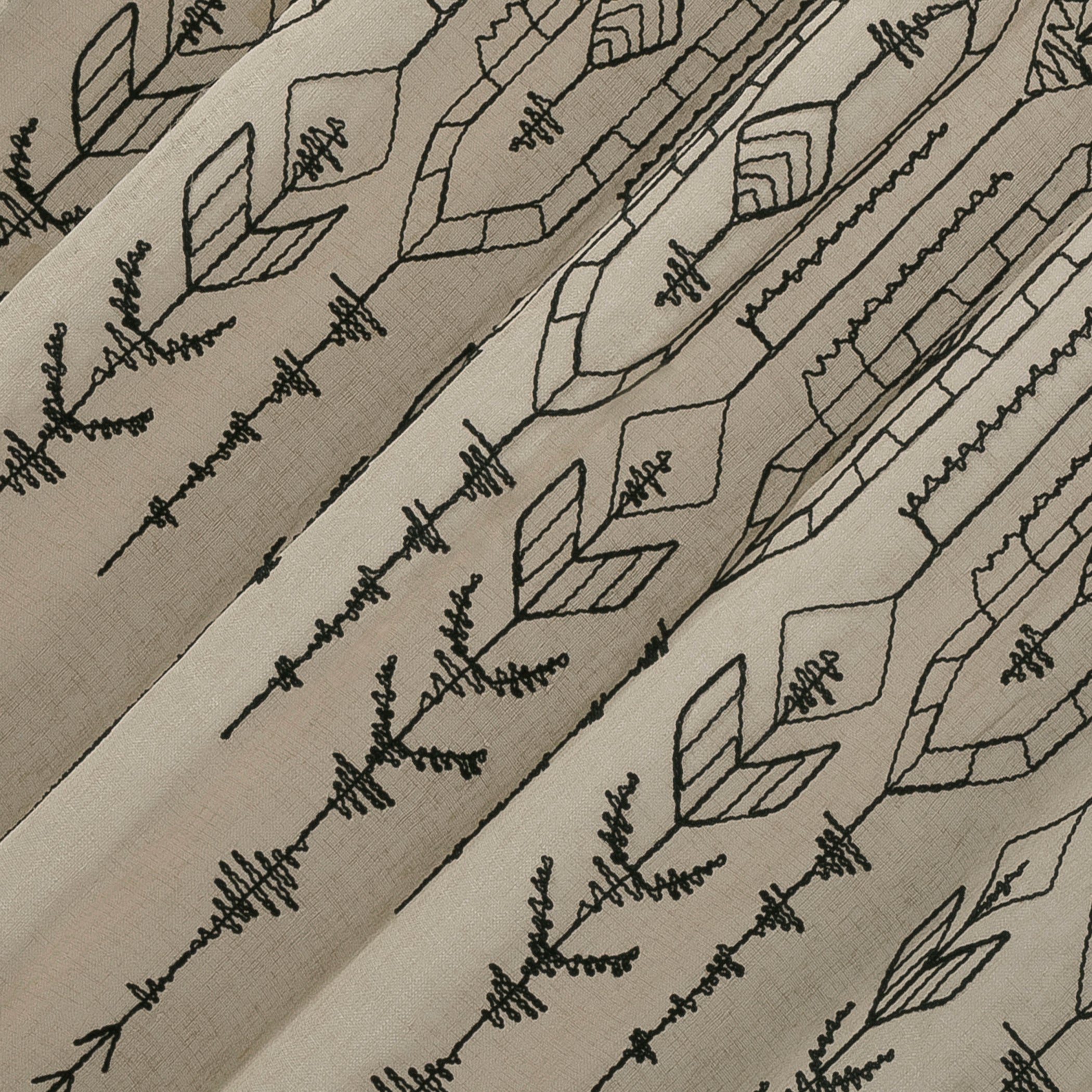 Palo Global Embroidery Semi-Sheer Rod Pocket Curtain Panel in Taupe