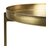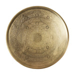 Simple, clean lines and a round tray top show off this accent table's antique brass finish. The modern metallic design is inspired by classic Moroccan tea tables.