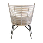 Laid back style, modern appeal, tropical flare, this occasional chair is packed with personality. Features include a handwoven "U" shaped rattan seat with white wash finish, iron base, and off-white linen covered cushion. Bring this chair into your abode and tropical paradise will follow.