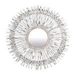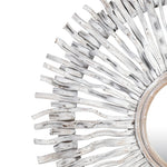 A circle of natural teak wood branches frame this round wall mirror to create an organic starburst design. Handcrafted from sustainable wood and whitewashed for a soft texture, reminiscent of driftwood from a tropical beach, for a relaxed coastal feel.